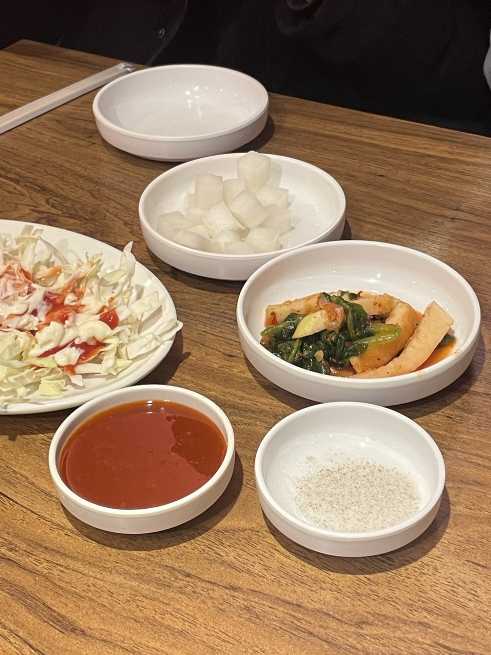 기본 반찬으로 열무김치와 양배추 샐러드가 나온다.