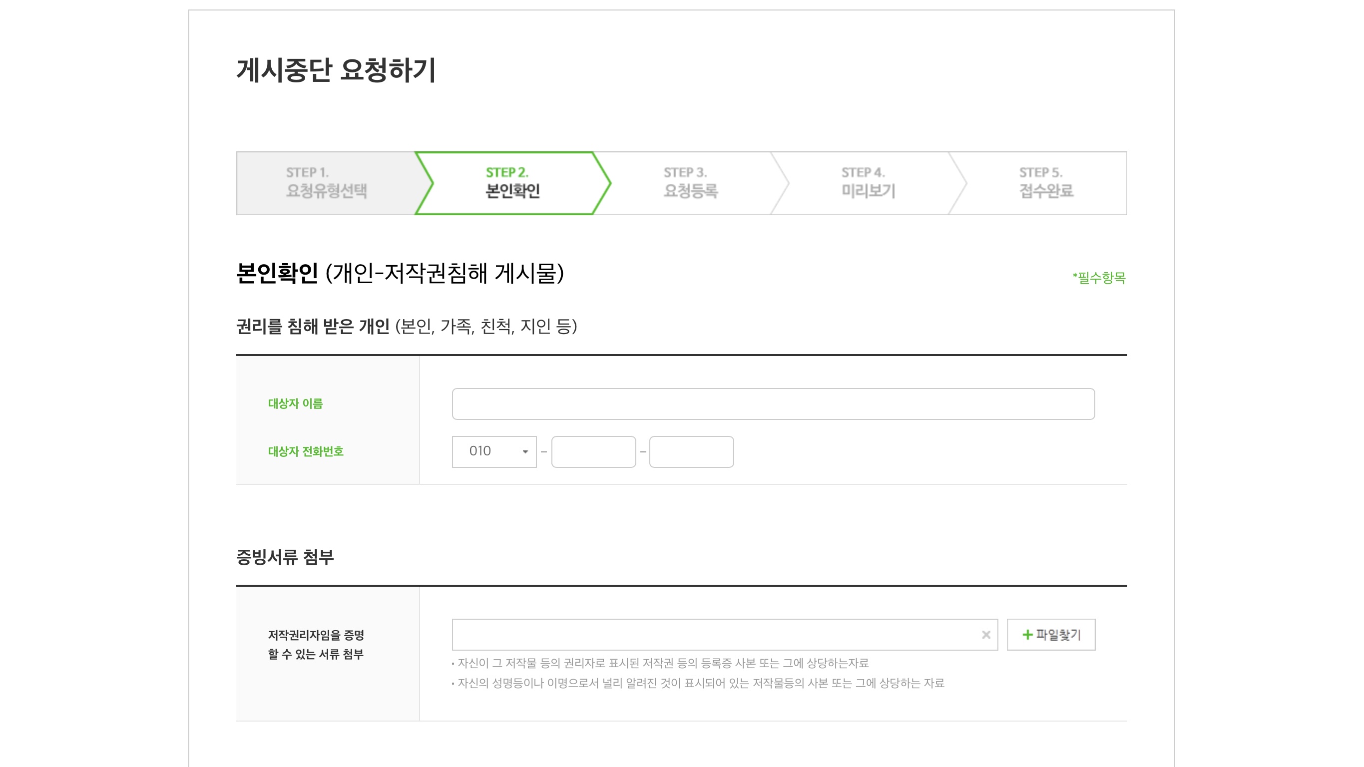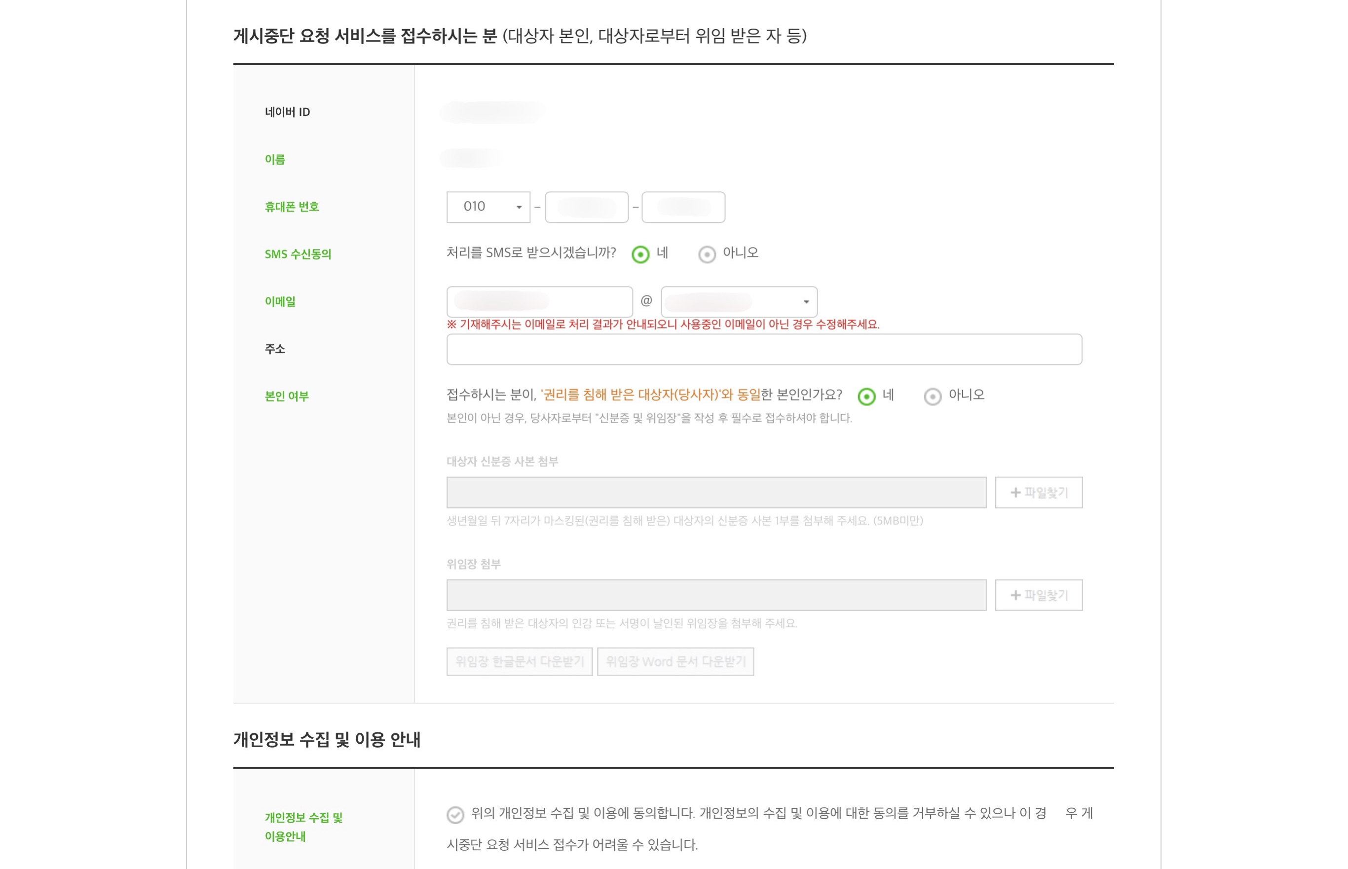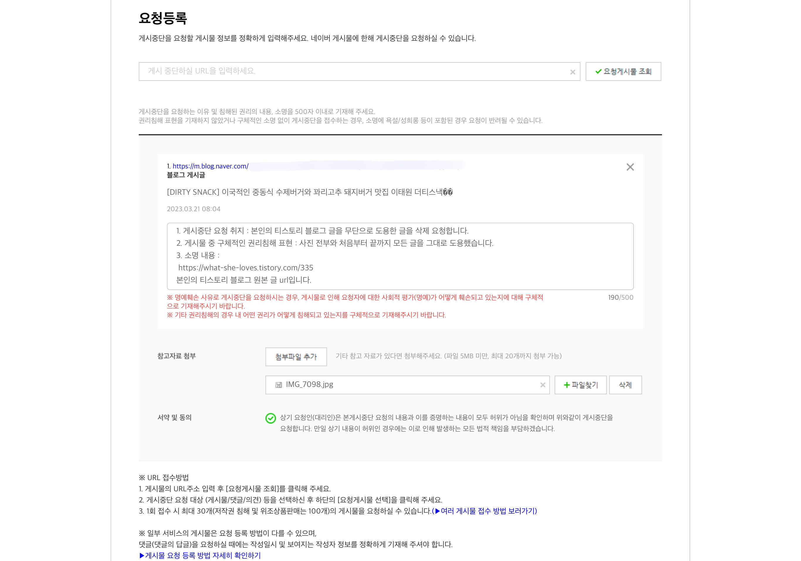 마지막으로 게시중단 요청 취지와 게시물 중 구체적인 권리침해 표현 그리고 소명 내용까지 써주면 된다.