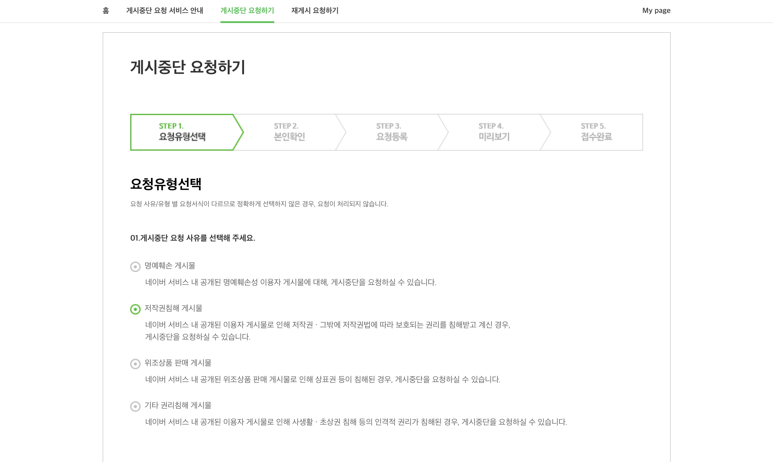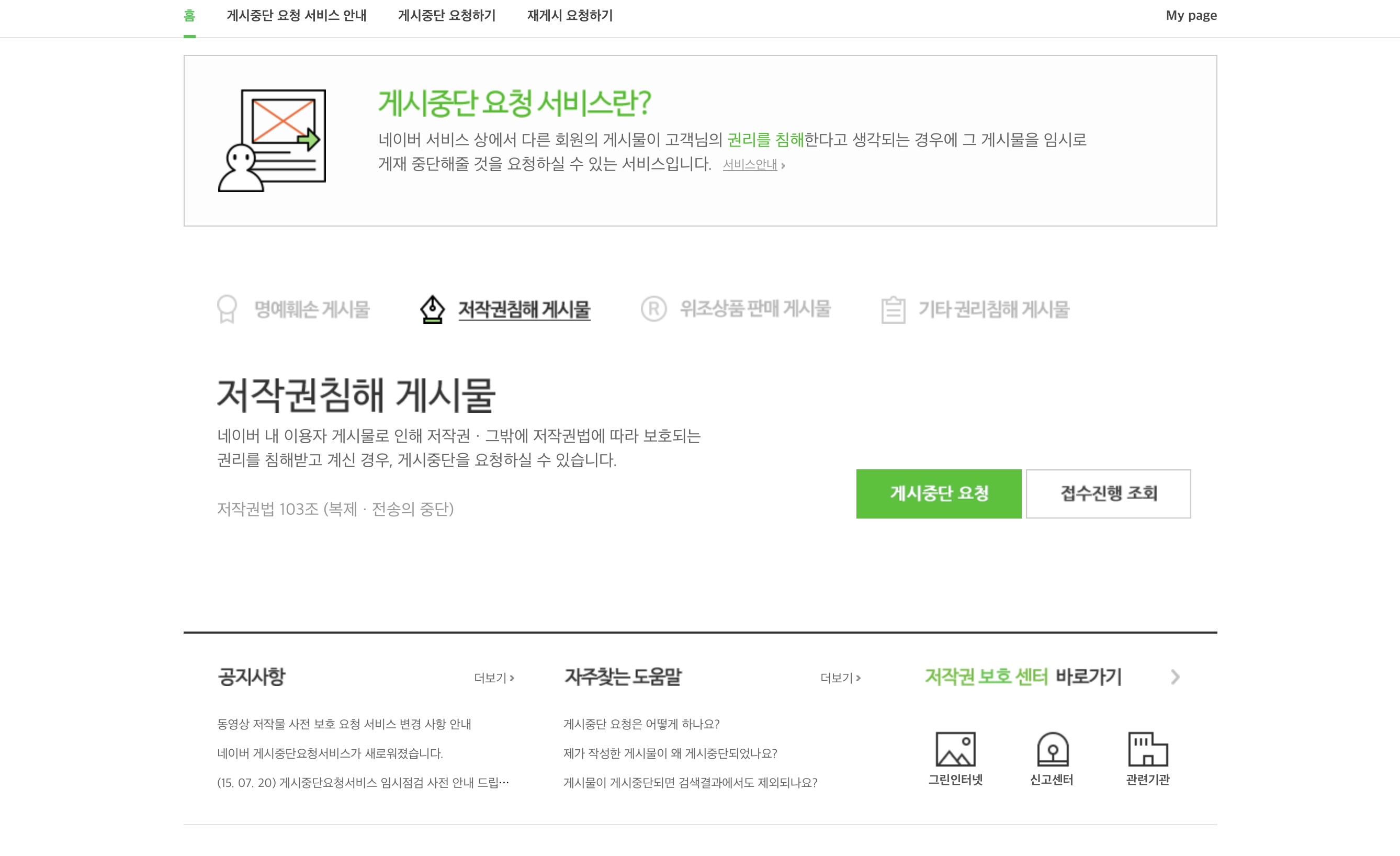 일단 네이버 게시중단 요청 서비스로 들어가야 한다.