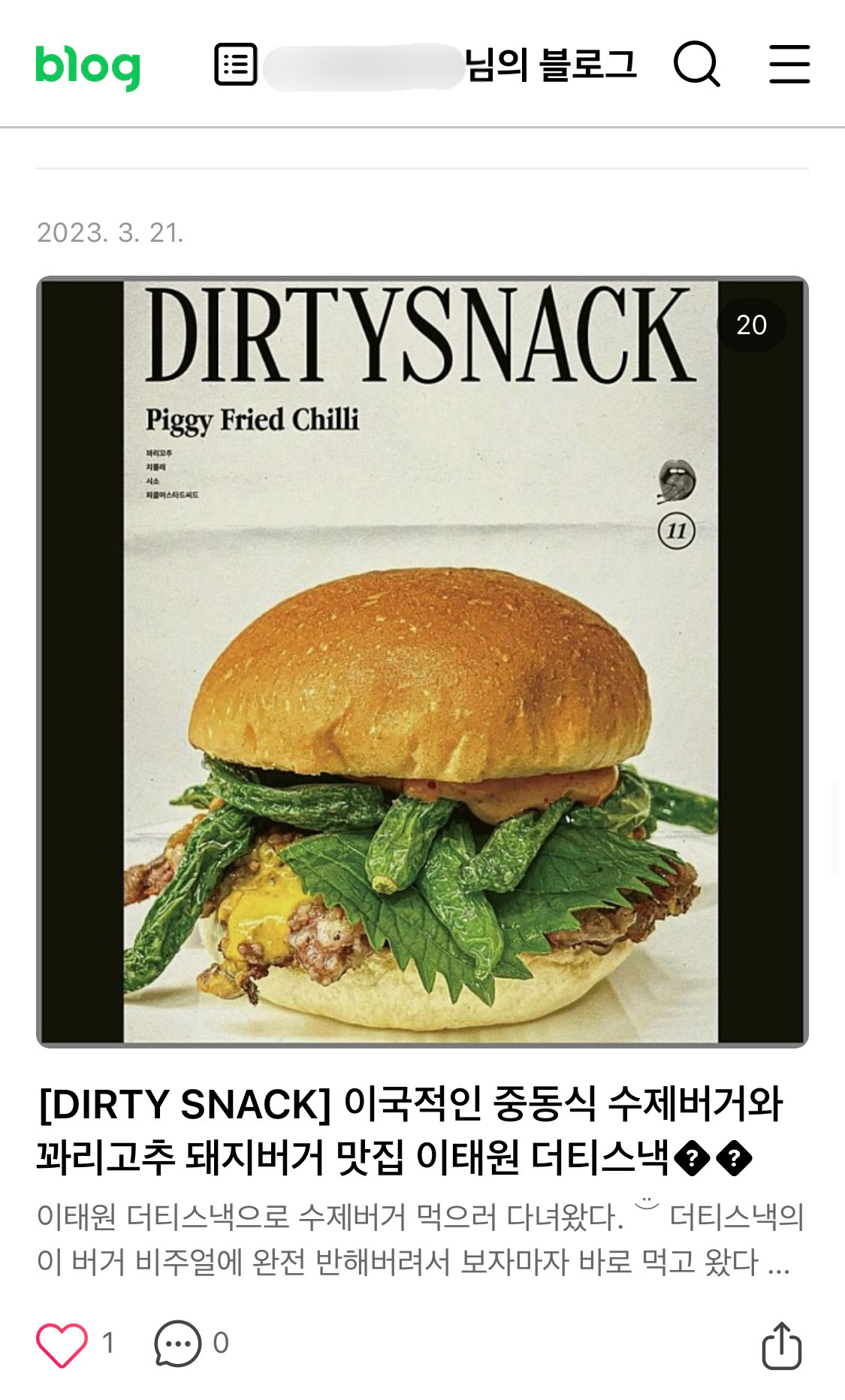 도용당한 글은 이태원의 수제버거 더티스낵 리뷰였다.