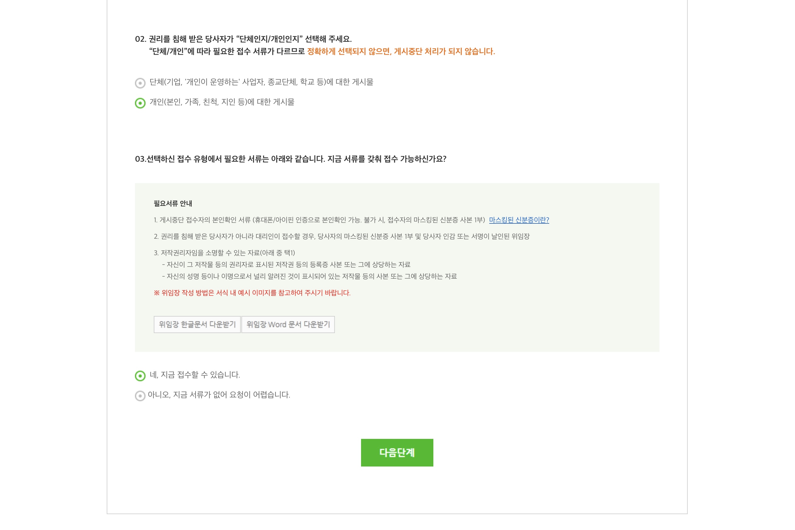 저작권침해 게시물 선택하고